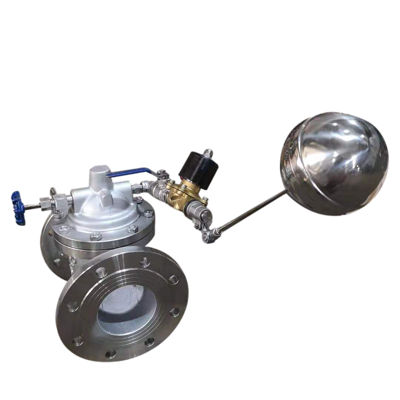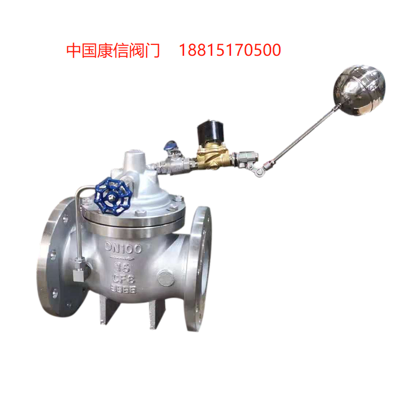 106X电动遥控浮球阀,又名106X电磁遥控浮球阀,是在100X遥控浮球阀的基础上安装了常开(常闭)型电磁阀电控装置,使该阀具有双保险作用,即使停电或浮球失灵,也能控制水位,绝不会让水位超过规定的位置,电动遥控浮球阀可以设置启闭水位,解决主阀频繁启闭的问题。该阀广泛用于高层建筑、城市生活用水、消防、工矿企业的水池,水塔的进水管道中。