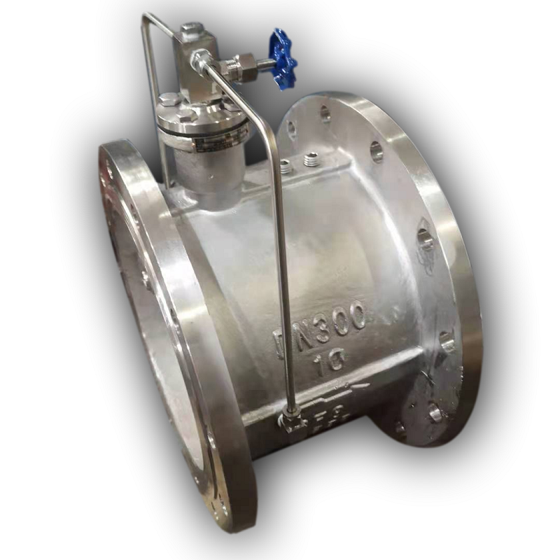 缓闭系统性能优良,不受管道中介质的影响,阀瓣先速关后缓闭,可防止破坏性水锤。